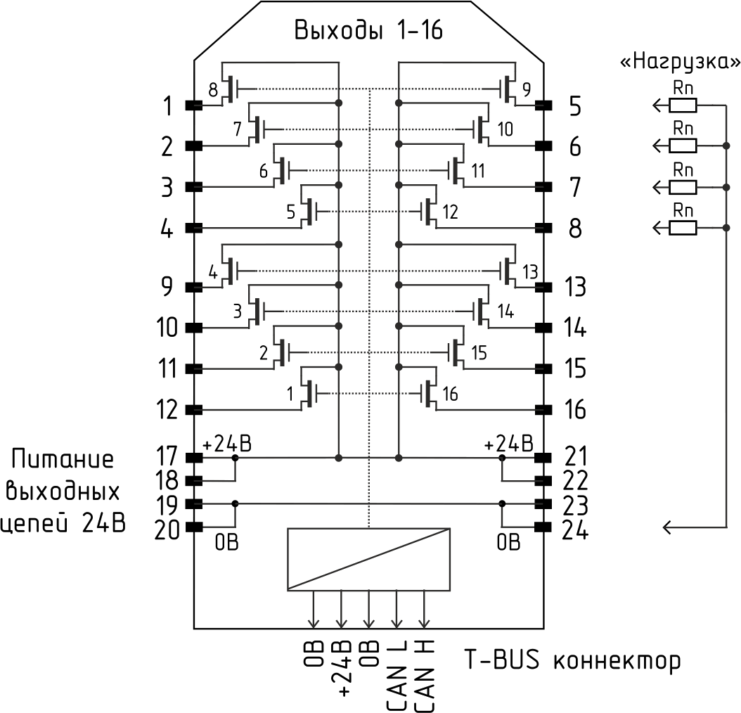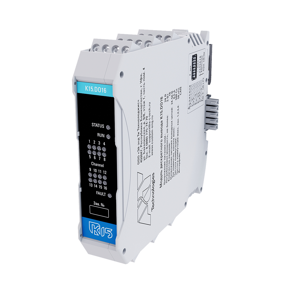 Модуль дискретного вывода «K15.DO16» применяется совместно с процессорным модулем для увеличения числа каналов дискретного вывода. Дискретные выходы выполнены в виде транзисторных ключей.