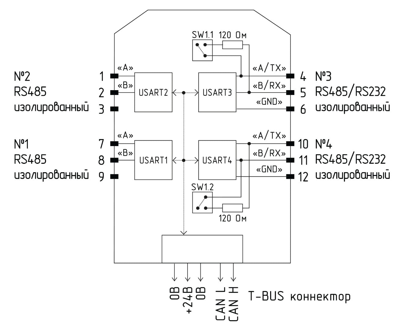Модуль последовательных интерфейсов серии «K15.SCM» применяется совместно с процессорными модулями для увеличения количества последовательных интерфейсов RS-485 и/или RS-232.